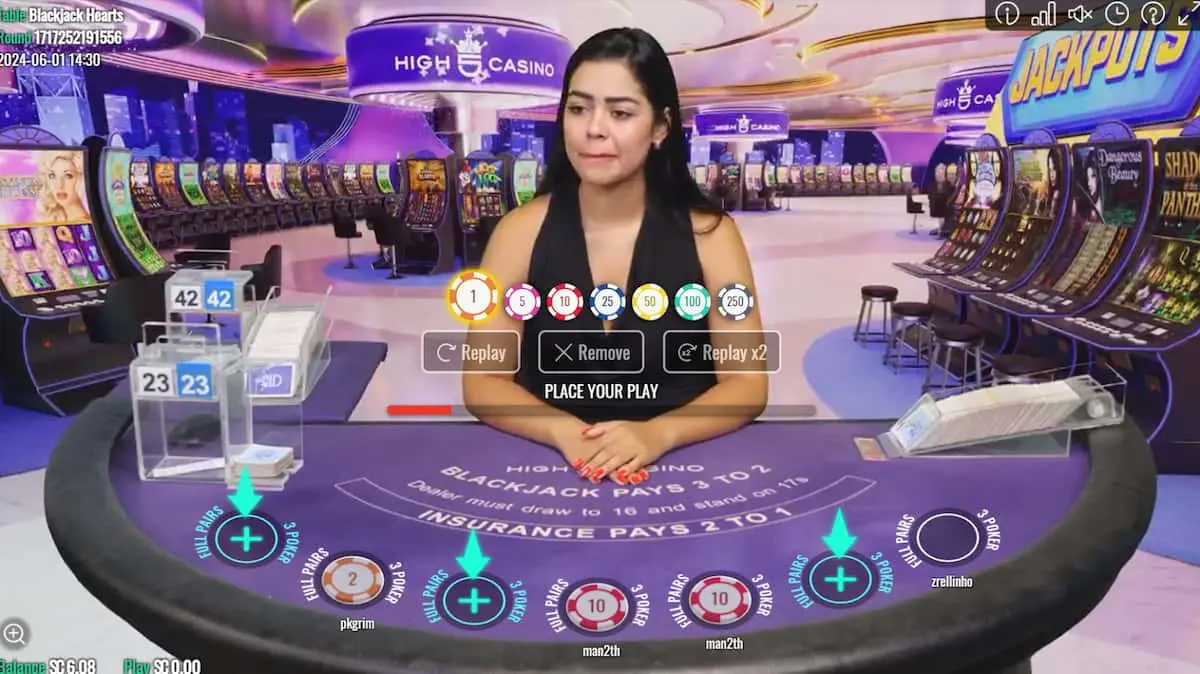 Once you select a game, the live-streaming footage appears. I like to play Blackjack Hearts, so I opened it and was seated at the table instantly. Arrows show you how to play, and the dealer makes it easy to start playing, providing light conversation as you wait for hands.